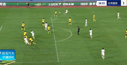 比赛的第38分钟,杨立瑜右路斜传,法比奥头球冲顶破门,北京国安取得了领先。