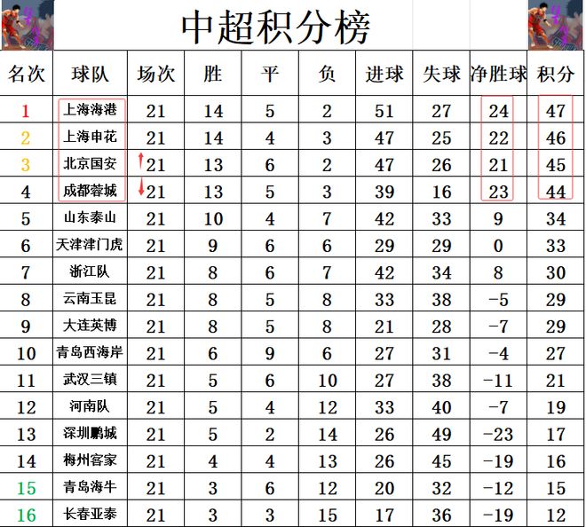 积分榜方面,申花3轮不胜只拿到2分,他们也就无力再超过上海海港夺回榜首,而是1分之差,正式跌到第2,榜首位置拱手让出。成都蓉城昨晚也无力赢球,这样的话他们被2连胜的国安超过,跌到了第4。前4还是和上轮一样,依次1分的差距,只不过排名不同,上港取代了申花榜首位置,国安取代成都蓉城第3的位置。山东泰山赢球后,差成都蓉城10分,还是排在第5。