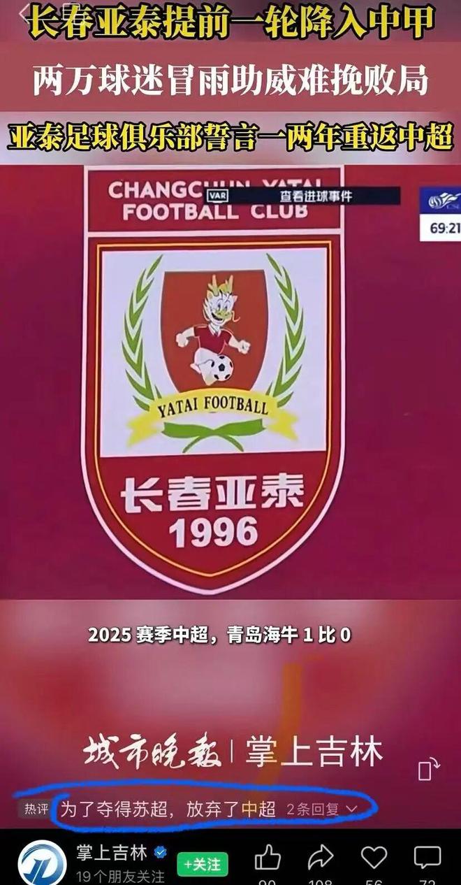 有网民调侃长春亚泰:“为了夺得苏超,放弃了中超”,实在让人哭笑不得。